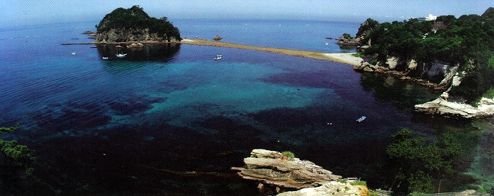 大きな松のすぐ下は海・・・そして三四郎島
