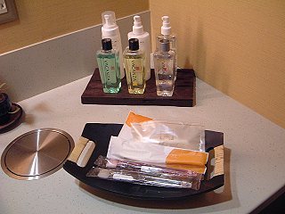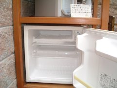 冷蔵庫はご自由にお使いいただけます。写真右はお部屋のアメニティー
