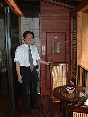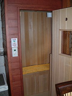 浴槽と反対側に、イス・テーブルを挟んでサウナルームを設置しています