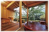 これだけの自然の中での専用露天風呂はまた格別な趣がある。目の前に天城山を1人占めしながら、またマイナスイオンの中でいろんなお風呂へ浴衣で出かけるのもいですね |