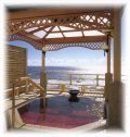 海の目の前の全室オーシャンビューの和風旅館 館内は全て畳敷きで、 スリッパは使用しない 3種類の個室露天があります が大浴場も素晴らしい 源泉84度かけ流し |
