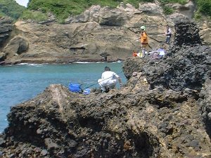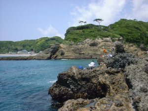 2つの台風が南海上を通過して、海の様子も暖かい海へと大きく変わったようだ。久々に元根で1日をのんびり過ごすこととした。到着も8時を過ぎすでに3人の人たちが団子釣りでクロダイを狙っている。話を聞くと下田の地元の若い方たちで、ここは初めてでまだ初心者なんですと謙遜していた。しばらく釣りを見ているとその集中力と一途な釣り方に気持ちが和む。彼らにここでのクロダイの釣果を説明するとさらに気合が入ったようで、とても嬉しそうであった。そうしている間もなくフカセで釣っていた一人の竿が大きく曲がる。しかししばらくやり取りの末ハリス切れで失敗。その後も皆がそこそこ竿を曲げて、30cm弱ののメジナやカワハギなどを仲間3人で釣り上げて楽しそうであった。彼らの一人が私にリールのレバーブレーキについて質問してきた。彼のリールはドラグ式なのだ。ドラグで大物を掛けた時の方法が分からないのだ。聞いてくるだけでも熱心さが伝わってきた。1