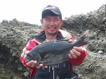 本命をメジナに切り替え釣るが鯖鯖鯖と鯖の連発。最初の1匹目は有り難かったが嬉しくない。その後、付け餌をボイルに変えて遠投し流していると手元にアタリがありあわせると確信した!鯖ではない、本命のメジナであった。計ってみると30センチちょっと。やった〜検量出来るしブービー賞が狙えるぞ、これで今日の目標を大幅に達成。気分を良くし同じ所を攻めるとまた手元にアタリが、さっきのメジナより大きい魚の感触。あげてみると自身初のイサキでした。すげ〜っ俺にもイサキが釣れたよと感激。
