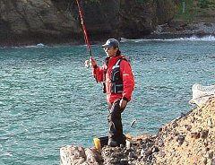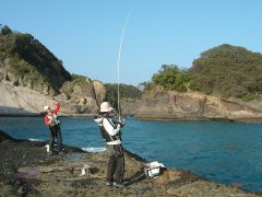 でも翌朝5時起きのはずの3人が8時になってようやく出発。磯も向かい合った2手に分かれての釣りだったが・・・・西が吹くと、こうも違うものなのだろうか(笑)。結局メジナも足裏サイズで止まりで終わってしまった。