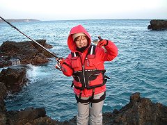 今回はすでに数回磯を経験されているクミちゃんと、全く初めてのイズミン^^ とても意欲的でガッツのあるお二人でしたよ^^ そして知らぬ間に自己新メジナを更新した中チンに「おめでとう・・・」でもこれからだからね、まだまだあなたなら釣れますから〜 |