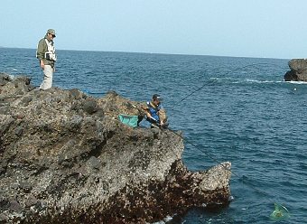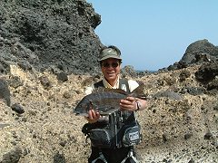 | ↑なぜか余裕のヒロ(笑) この日またまた沖磯でPゲットかぁ? |