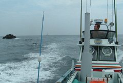 石廊崎の宮島丸は、快調に船を進め、その風が心地良い・・・と言っている場合ではないのだが、我々3人は最後に沖の丸島へ・・・