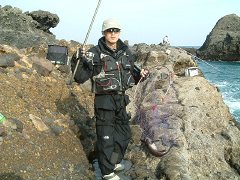 海況も気象もその日は決して好条件ではなかった。荒れた海の中で、いかにして道糸も仕掛けも、自分なりにコントロールするかである。まだ海水温も15度レベルの海で、大きなサラシや払い出しは厳しいものがある。でもここは永年通った地磯、チャレンジしてこそ結果が出るものだ。行かなくして何も言えるものではない。