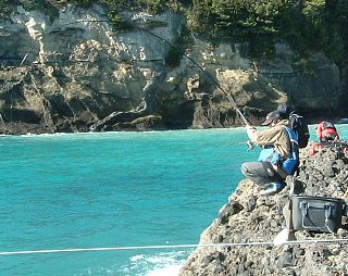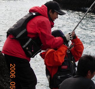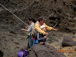 こどもの日に「子供磯釣り教室」を開いてみた。ちょうど釣りに興味を持ち始める頃のお子さん達3名が参加。3人ともそれぞれの体験があったことと思うが、皆さんの協力に感謝いたします。この日の伊豆は人出がいっぱい。磯の横の砂浜は大混雑で、子供達の絶好の遊び場でもある。それも無料でね^^ でもそんな事にも目もくれず黙々と釣り続けていたのが印象的。「そうだ、もっとデカイ獲物を狙え、そしてそいつと竿と糸で格闘してみろ」そんな私の願いは子供達に通じたであろうか・・・