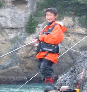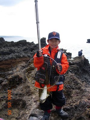 子供にとって、釣りでイメージする魚のサイズは、「ハゼ」「アジ」「キス」ぐらいかもしれないね。でもこの日の海もスリリングであったのだ。35cm程のアイゴ、そして40cmほどのニザダイ(サンノジ)、40cmオーバーのボラ、30cm弱のメジナ、そして姿は見れずとも引きの強い良型と思われる魚のバラシ。そんな魚達と直接出会えるのも、磯釣りならでわのものだと思う。