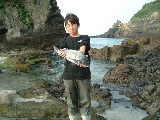 その後夜が明け木っ端メジナが釣れるようになってきた。それでもシュウが6時半に30cmのメジナを追加し。7時納竿となった。