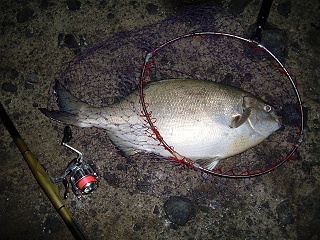 5分はお付き合いしてもらっただろうか、何とかタモに収まったのだが、やはり重い!やはりそれはイスズミだった。