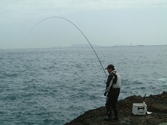 2日間の磯つり講習だったが、初日はやや悪天候を予測して昼からを予定して東伊豆の地磯へ。