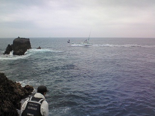 そんなあんばいで、我々二人は2便の渡船でお願いしたのだが、さすが船に乗る直前は見かけだけでも彼は元気だった。でもできれば港から近い磯をリクエスト・・・