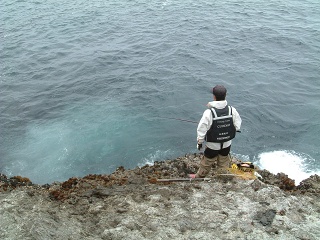 4人で乗った親島という磯だが、私は4番目のくじで、一人離れて地磯寄りの水道付近を選択。
