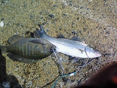 その後大きく竿を曲げてくれたのは、30cmのクチブトメジナ。