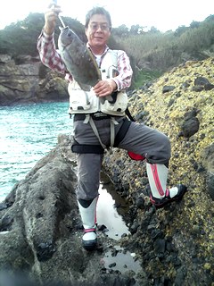 あいにく魚は良型のアイゴだったが、Sさんにとっては大きな一枚。