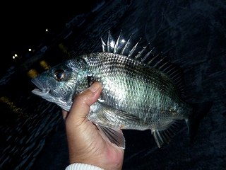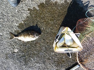 夕間詰にシマアジは期待しないが、クロダイとメジナを狙って。2時間ほどだったが、小ぶりのクロダイを二人で2枚。