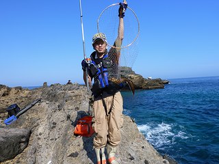 2度目の磯釣りの柿沼さん。忘れかけていた糸と鈎の結びをしっかり復習されて実釣。