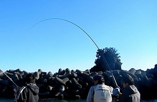 長くて柔らかい竿が、魚に出来るだけ衝撃を与えず海面まで浮かせる理屈もわかっていただけたのかと。。。