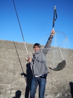 そんなこんなで午後3時半を回った頃、土田さんに10p強のメジナが。