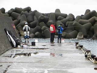 しばらくは小雨の中で手軽な堤防で、雨が上がるまで竿を出してみる。