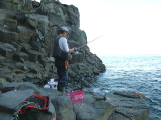半分磯釣り教室みたいなものだが、実際釣り上げる様を見ていただくことも大切。