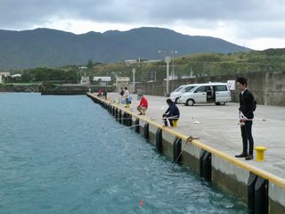 昼過ぎ空港まで迎えさせていただき、12名様の内9名様はサビキ釣りで。
