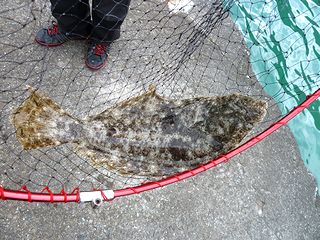 その後私も竿を出して、私にも40p強のヒラメが来た。