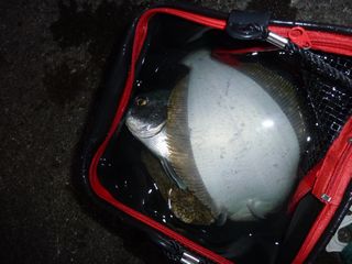 このヒラメの前にも元気なヘダイを掛けていた城主さん。
