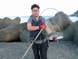 この日は重いスペアの磯竿で風も強いので疲れたかと思われるが、とても嬉しい1枚だったはず。
