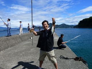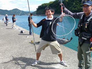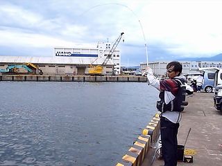 たまたま他の釣り人が堤防の先端あたりで大きく竿を曲げていた。