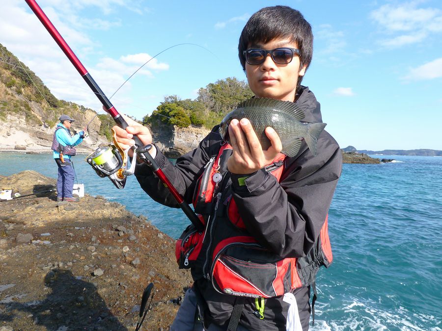 ある人の情報では水温が14℃台だと・・・ そんな中でもエサ取りがわんさか。 前回と同じサヨリとショウサイフグが一日中わんさか。 エサ取りだらけでも、撒き餌と仕掛けを振り込むポイントを何度も変えて、掛けたメジナ。