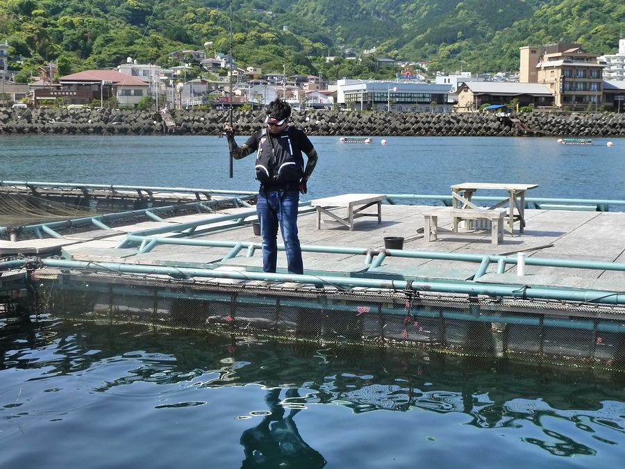今年の秋の団体旅行のアイテムとして、筏釣りのアクティビティを組んでみたのだが、 試しに一度筏に乗ってみなければと出かけてみた。 網代港の湾内に浮かぶ筏の上での釣り。船で1分の釣り場。 『筏釣りの東海』さんは1時間4,000円。 釣った魚の持ち帰りOK 自前の竿や仕掛けもOK 貸し竿(3メートル弱程度の長さで仕掛けセッティング済み)もある。