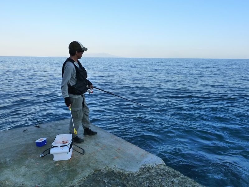 秋晴れの中、いろんな磯や堤防を見て回り、たどり着いた東伊豆の堤防。 楽に入れる堤防だが、ジグを投げている人たちが多かった。 しかしその釣果を聞いてみてもイマイチのようだ。
