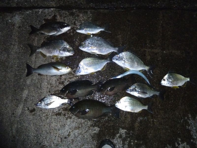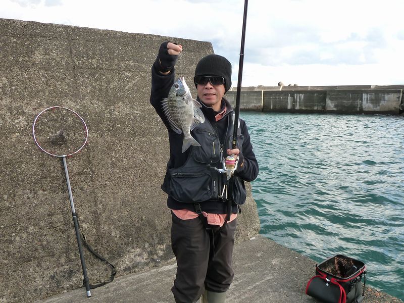しっかり撒き餌が聞いてきた頃、ポツポツとメジナや小さいクロダイが。