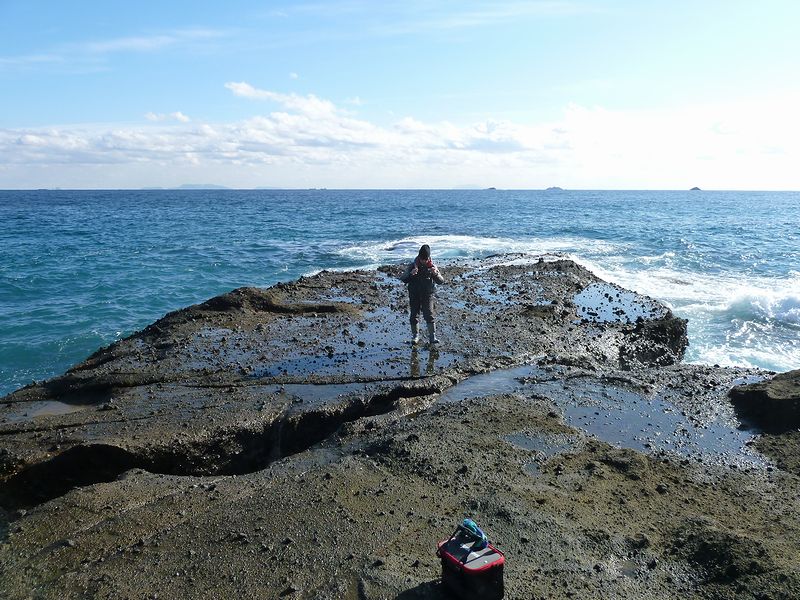 風もたいして吹くこともなく、しばし磯へ入ってみたがウネリが取れない。