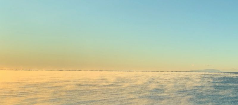 またまた毛嵐・・・空から降りた雲の様であり海に積もった綿雪みたい。