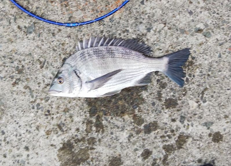 3度目の磯釣り教室でかなりの釣果。このヘダイも太っていて引きは強かった。