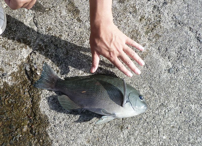 良く引いて根に突っ込んでいった30pほどのメジナも・・・ こんなサイズを何枚も練習台にして、次回は40オーバーのメジナを 釣っていただきたい。 レポート 金田