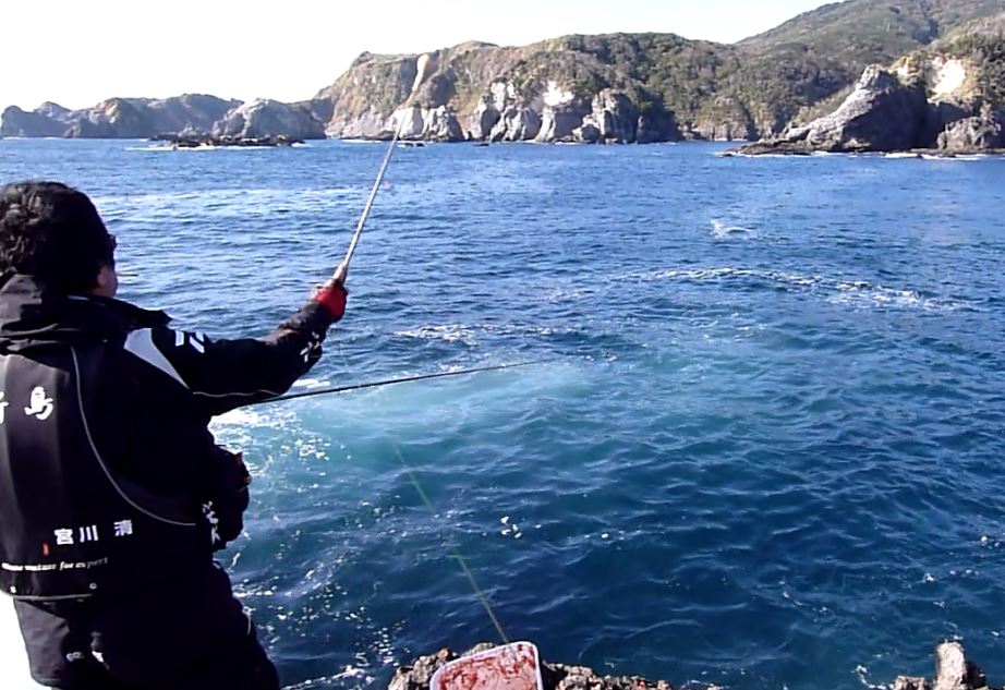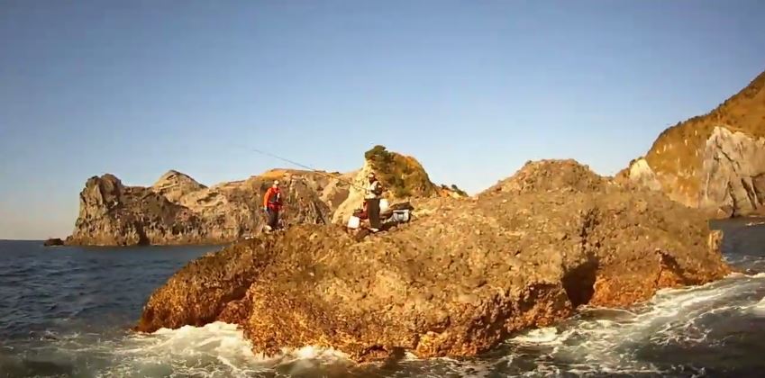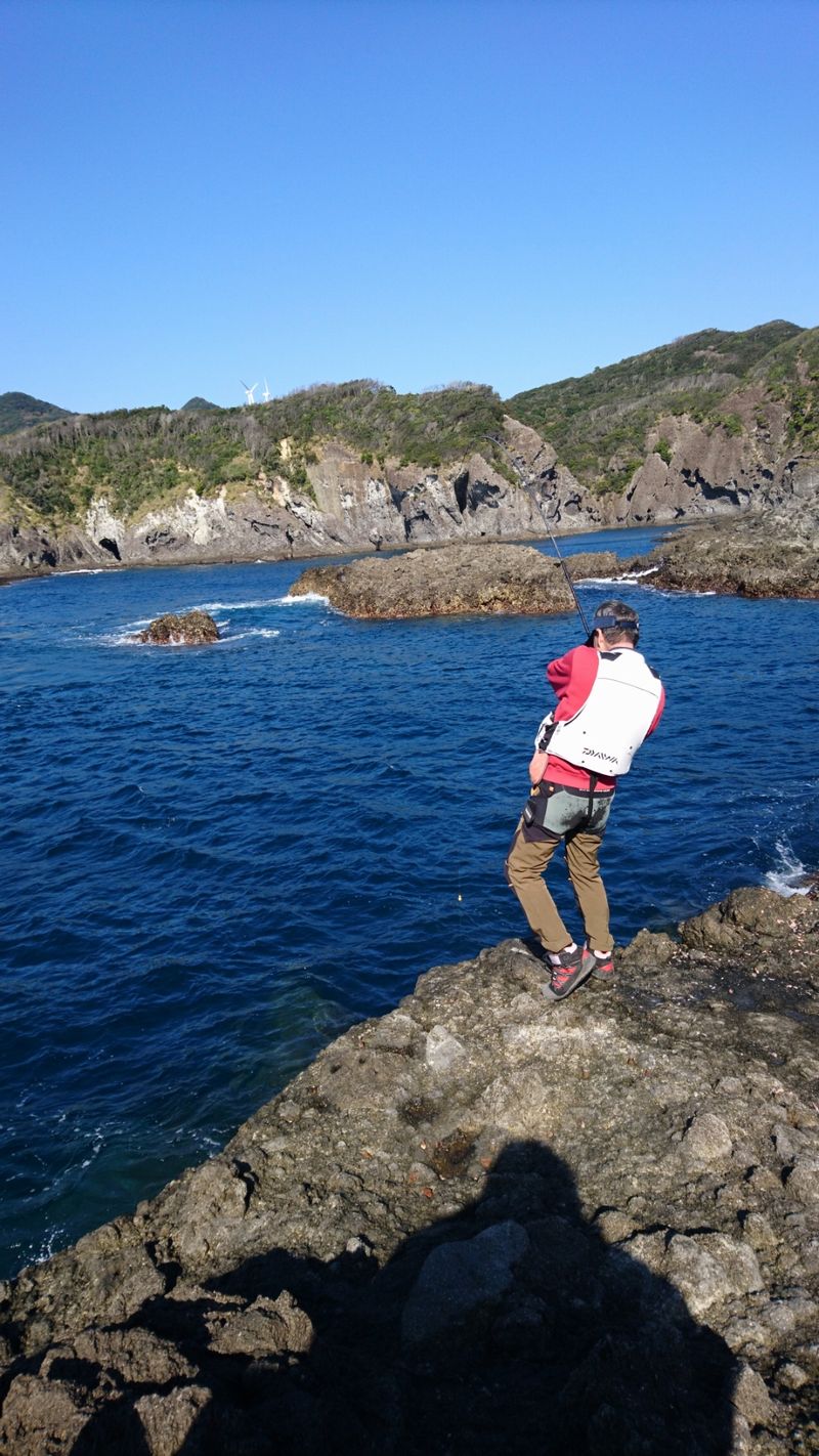 やや沖は どの棚を探っても小中のイサキばかり、なので磯際を攻めての一枚。