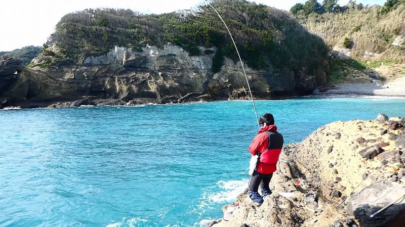 大型魚を片手で操るのも大変だが、そんな際は竿尻を腰に当てがって・・・ 両手で竿を操るのもいいが腰竿のほうが竿は安定して良い時もある。 湾奥では味わえないやり取りです。 魚が下へ突っ込むときは膝も使って、魚の動きに合わせて身体全体で無理なく対処していく。 強い魚が走るときは糸を出すのも必要な時も・・・だが、猛烈に走るのを急に止めてはいけない。 その時にラインブレークとなることが多い。 とにかく魚と急激な喧嘩をしないことがこの釣りの面白さですね。