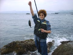 その後サラシに乗せて30m程沖まで流してアタリがあった。浮き下1ヒロ強の固定でも活性があったのだ。竿の号数は2号竿でも、釣っている方はメジナの引きにもう興奮。初心者にありがちな竿の溜めの甘さはあるが、それを修正しためてから巻き取ることを修正してもらう。