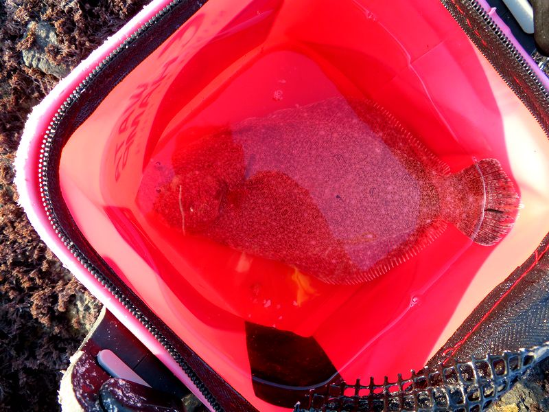 ウキフカセで釣る磯釣りだが、なかなか厳しい時は少しインチキの仕掛けで・・ 食ってきたのはヒラメだった。