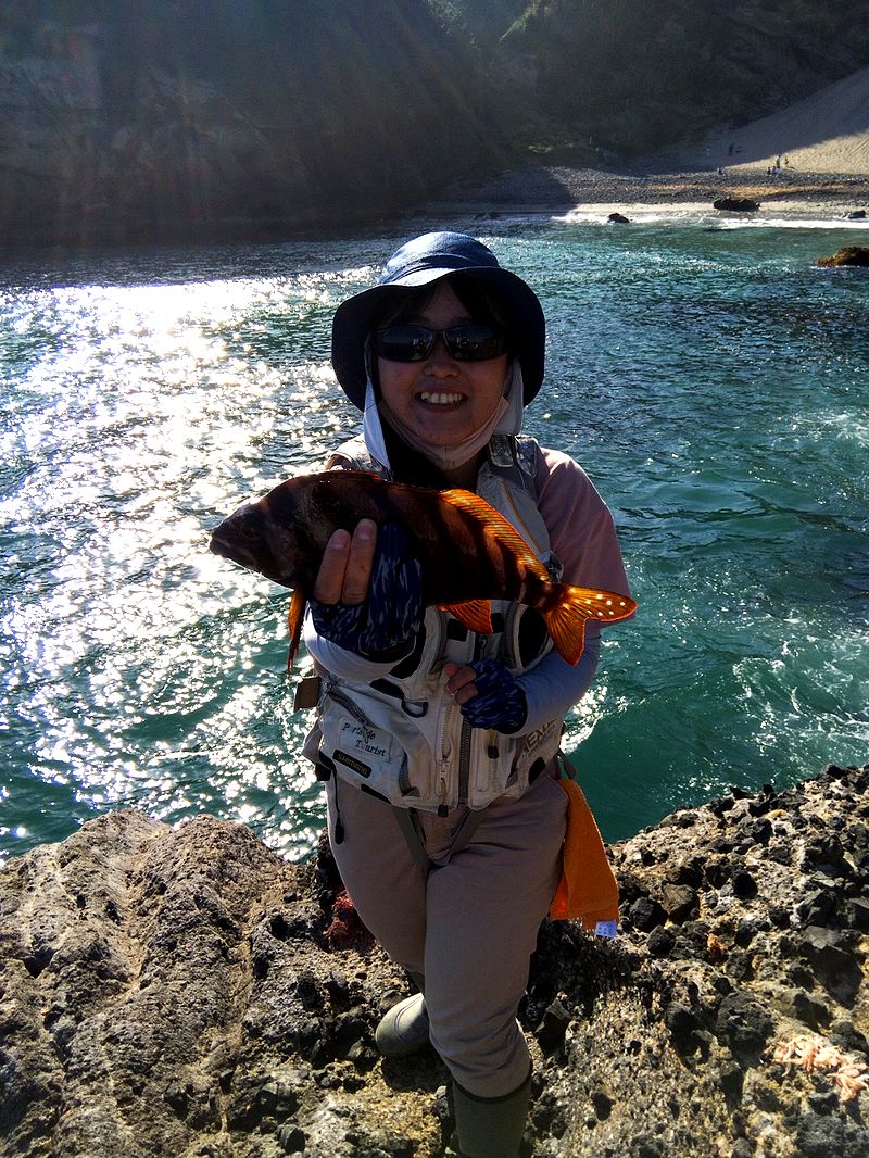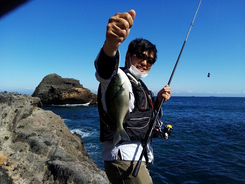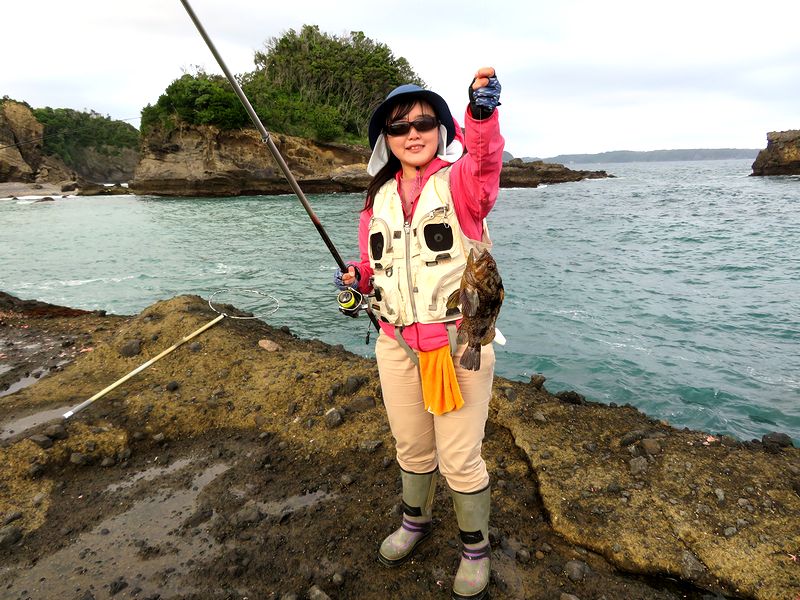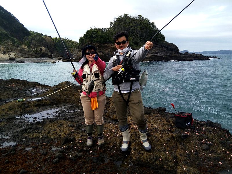 いろんな釣りをされているご夫婦。 だが磯でのウキフカセは初めてとの事。 ナライの風がやや強く、釣りづらい状況の中でもオナガメジナを。 ご主人曰く「こんなにメジナって引くんだ」と驚いてらした。