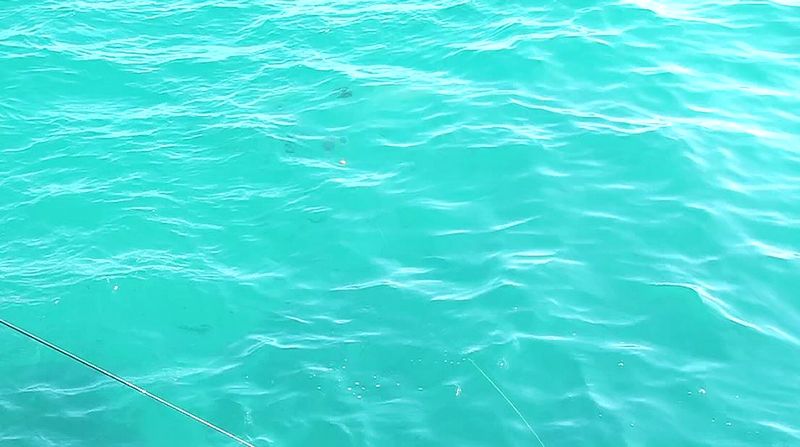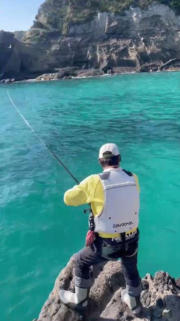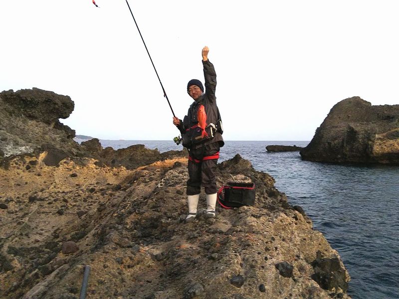 撒き餌に反応する魚 見えている黒い数匹はハコフグだが、この直前にはシマアジがオキアミを狙って 着水するや否や群れになって猛突進。 ちなみにイスは40オーバー メジナは33pどまり。 そして二人してバラシはハリはずれを含めて3回?4回?(笑) デカイ強烈な魚をバラスからこそ面白いこの釣りなのです。 レポート 金田