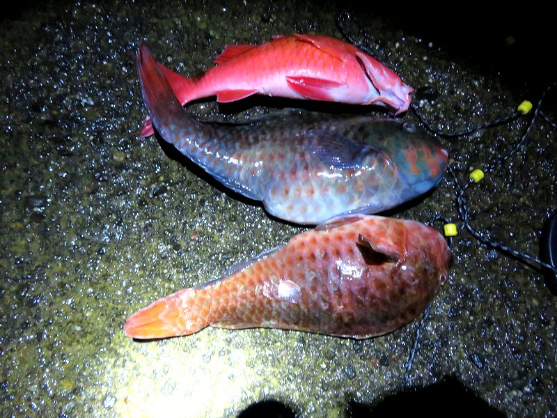 Kさんも大きなブダイを何度も掛けていたが、 上の画像のヒメジ(オジサン)は型も良くオキアミで食ってきたもの。 メジナは小ぶりのオナガが出た程度でなかなか厳しかった。 レポート 金田