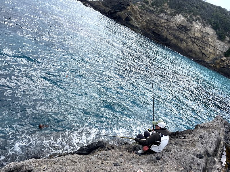 私はまた違う釣り方でブーちゃんを。 ポイントも変えいろいろ試してみるが・・・やはりでかいブーちゃん。 手の平サイズのメジナもたまに。 そしてスパッとウキを消し込んで足元へ一気に走って潜られかかったが、 何とかかわして浮かせた時点でハリス切れ。 なかなか良い型のメジナだった。 レポート 金田