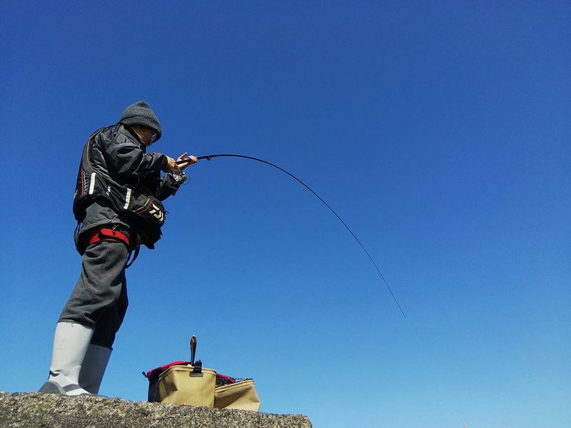 泊りがけで来られているTさん達と共に竿を出したが・・・ あいにく風も北東寄りで強くウネリも大きいので磯は断念して堤防へ。 かなり魚の活性も上がってきているはずだが、海は底荒れ海藻は大量^^; みんな海藻に苦労した。 上の画像は萩やんがエイを掛けた際のやり取り。