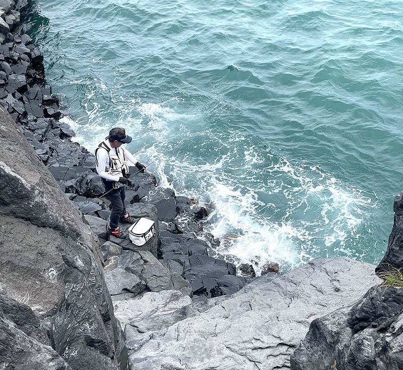 大雨をもたらした台風2号の影響で一見静かな海に見えるがウネリは大きい。 やはり南へ足を進めても難しいと判断して伊東の磯へ。 昼前が干潮の大潮の日、出来るところまでやってみようと。 とにかくこの磯はエサ取りが多くて以前から悩ましいところだが、 私にはポツポツ小メジナが釣れる中で、良いサイズのカワハギや35pほどのサンノジも。